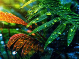 Yağmur Damlalarıyla Canlanan Tropik Yaprakların Ferahlatıcı Dansı Amerikan Servis