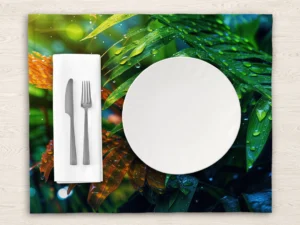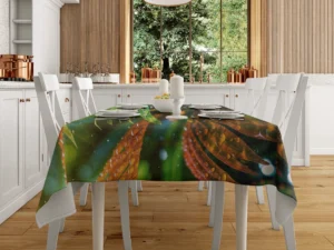 Yağmur Damlalarıyla Canlanan Tropik Yaprakların Ferahlatıcı Dansı Masa Örtüsü