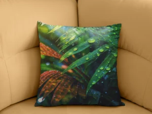 Yağmur Damlalarıyla Canlanan Tropik Yaprakların Ferahlatıcı Dansı Kırlent