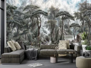 Şelalelerin Fısıltılarıyla Yıkanan Çam ve Selvi Ağaçları Manzarası Poster Duvar Kağıdı