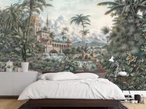 Palmiye Ağaçlarının Gölgesinde Yükselen Antik Saraylar Nefes Kesen Manzara Poster Duvar Kağıdı