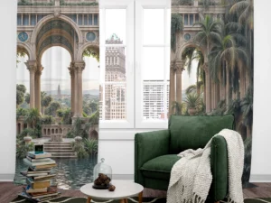 Monokrom Tonlarda Yükselen Antik Peyzaj Fon Kumaş