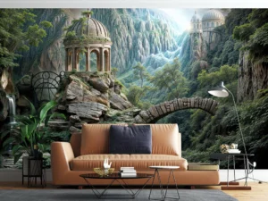 Kadim Sırların Fısıldadığı Yeşil Vadilerde Yükselen Fantastik Tapınaklar Poster Duvar Kağıdı