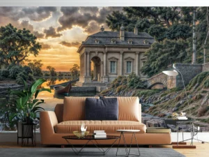 Fransız Köşkünün Romantik Gün Batımı Poster Duvar Kağıdı