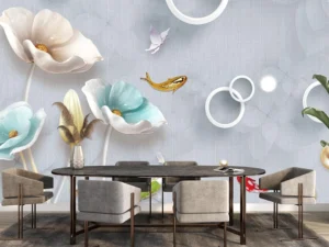 Suyun Zarafetiyle Buluşan Çiçekler ve Balıklar Poster Duvar Kağıdı