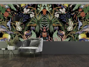 Tropikal Çiçekler ve Egzotik Zarif Kuşlar Poster Duvar Kağıdı