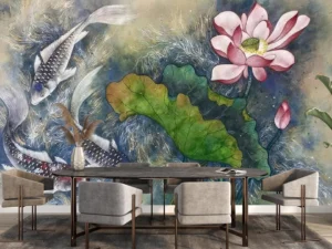 Koi Balıklarının Zarafeti ve Lotus Çiçeğinin Büyüsü Poster Duvar Kağıdı