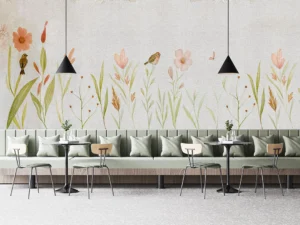 Kuşların Cıvıltısıyla Renklenen Çiçek Bahçesi Poster Duvar Kağıdı