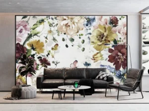 Kelebeklerin Dansı ve Zarif Çiçeklerin Nostaljik Bir Rüyayı Andıran Tasarımı Poster Duvar Kağıdı