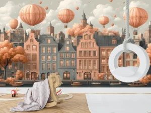 Tonlarda Yükselen Balonlarla Zamanda Yolculuk Yapan Şehir Fon Kumaş