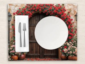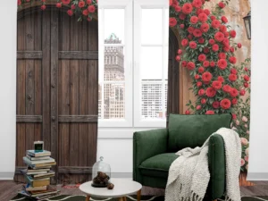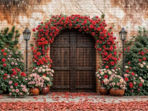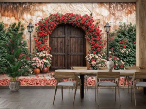 Bu tasarım, zamanda donmuş, gizemli ve romantik bir bahçenin eşiğini gözler önüne seriyor. Eski, dokulu taş duvarın önünde yükselen, binlerce canlı kırmızı ve narin pembe gülden oluşmuş devasa bir ...