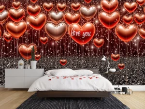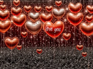 Bu tasarım, aşkın en canlı ve en neşeli halini, adeta bir rüyadan fırlamış gibi gözler önüne seriyor. Parlak kırmızı ve pembe tonlarındaki kalp şeklindeki balonlar, ışıltılı ve derin bir ...