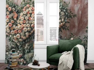 Bu tasarım, doğanın sakinliği ile romantizmin sıcaklığını büyüleyici bir şekilde bir araya getiriyor. Dokulu, açık renkli bir duvarın önünde yükselen, şeftali ve krem tonlarındaki güllerle özenle bezenmiş devasa bir ...