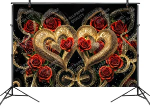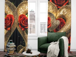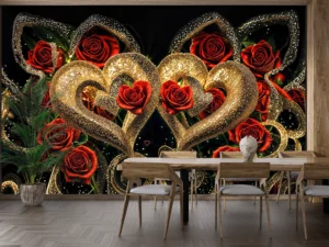 Bu tasarım, aşkın en lüks ve en ihtişamlı halini, adeta bir mücevher kutusundan fırlamış gibi gözler önüne seriyor. Koyu, gizemli bir arka plan üzerinde yükselen, ışıltılı altın rengi kalp ...