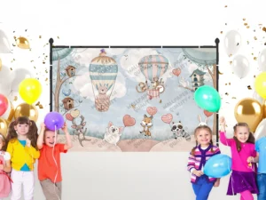 Hayvanların Neşeli Balon Serüveni Fon Kumaş