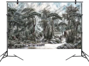 Şelalelerin Fısıltılarıyla Yıkanan Çam ve Selvi Ağaçları Manzarası Fon Kumaş