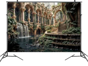 Şelalelerin Fısıltısıyla Yemyeşil Antik Ruhun İhtişamı Fon Kumaş