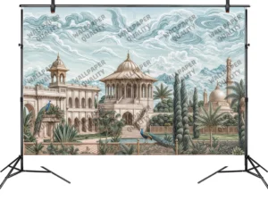 Tavus Kuşlarının Dansıyla Yükselen Kubbeli Yapılar Fon Kumaş