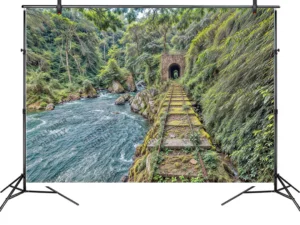Terk Edilmiş Demiryolunun ve Akan Nehrin Sonsuz Büyüsü Fon Kumaş