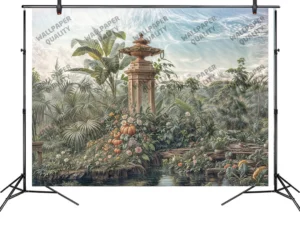 Doğa ve Tarihin Kucaklaşmasıyla Yemyeşil Sarmaşıkların Sonsuz Güzelliği Fon Kumaş