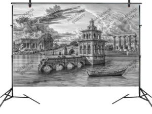Antik Suyun Üzerinde Yükselen Klasik Mimari Fon Kumaş
