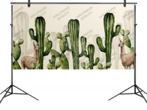 Tropik Kaktüsler ve Lama Dostluğu Fon Kumaş