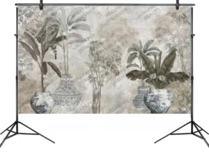Saksılarda Tropik Vaha Fon Kumaş