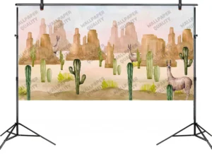 Çölün İncisi Kaktüsler ve Lamaların Sıcak Dansı Fon Kumaş