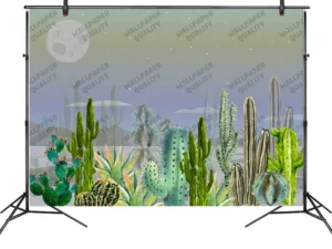 Kaktüslerin Ay Işığında Büyüsü Fon Kumaş