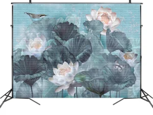 Kuşların Şarkısıyla Dans Eden Lotus Çiçekleri Fon Kumaş