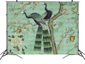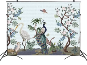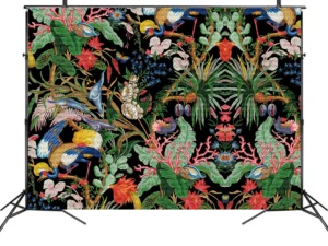 Tropikal Çiçekler ve Egzotik Zarif Kuşlar Fon Kumaş
