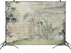 Uzakdoğu’nun Gizemli Bahçesinde Zarif Çiçekler ve Kuşlar Fon Kumaş