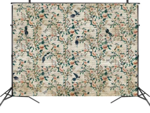 Vintage Çiçekler Kuşlar ve Kelebeklerle Bezenmiş Nostaljik Bahçe Fon Kumaş