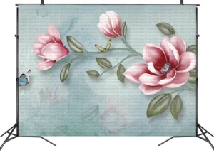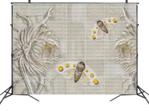 Zarif Çiçekler ve Uçan Kelebekler Fon Kumaş