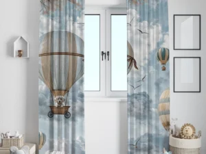 Hava Balonlarıyla Bulutların Üzerinde Süzülen Sevimli Dostların Neşe Dolu Yolculuğu Fon Perde