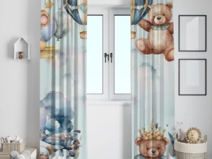 Gökyüzünde Uçan Balonlar ve Uçaklarla Neşeli Ayılar Diyarı Fon Perde