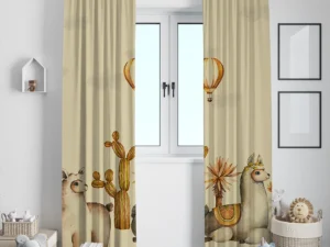 Lamaların ve Sıcak Hava Balonlarının Neşeli Yolculuğu Pastel Tonlarda Bir Rüya Fon Perde
