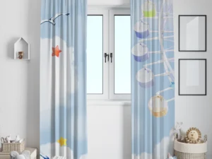 Neşeli Dönme Dolap ve Uçan Balonlar Fon Perde