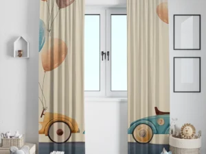 Nostaljik Arabaların Balonlarla Renkli Dansı Fon Perde
