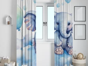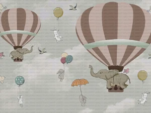 Balonlarla Uçan Filler ve Tavşanların Masalsı Dünyası Fon Perde