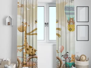 Bisikletli Zürafa ve Neşeli Dostlarının Balonlarla Dolu Masalı Fon Perde