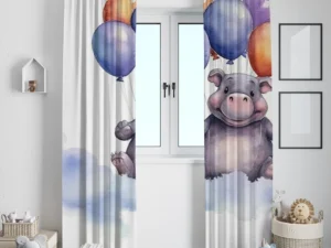Bulutların Üzerinde Balonlarla Dans Eden Sevimli Su Aygırı Fon Perde