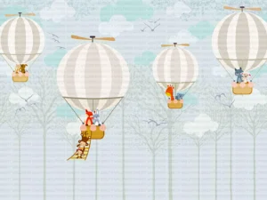 Balonda Uçan Neşeli Hayvanlarla Yolculuk Poster Fon Perde