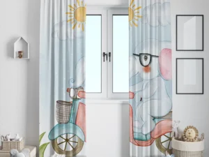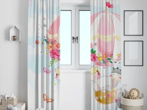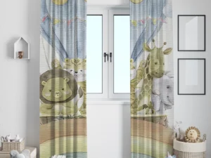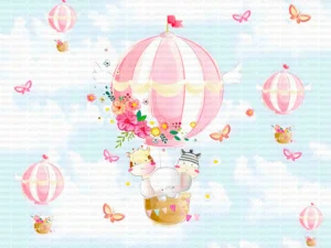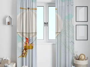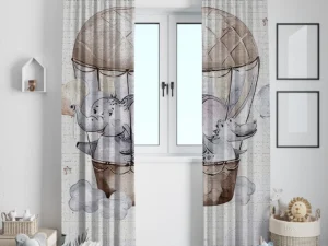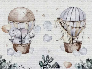 Balonla Gökyüzünde Fil ve Zürafa Macerası Fon Perde