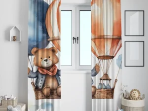 Balonla Gökyüzünde Sevimli Ayı Poster Fon Perde