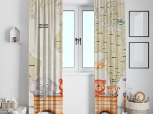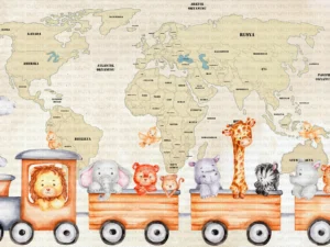 Hayvanlarla Tren Yolculuğu Dünya Haritası Macerası Fon Perde