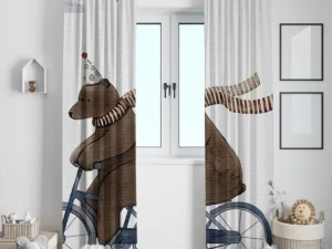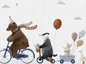 Parti Şapkalı Bisikletli Ayı ve Neşeli Dostlarının Balonlu Yolculuğu Fon Perde
