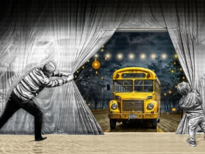 Perdenin Ardından Beliren Nostaljik Otobüs Fon Perde
