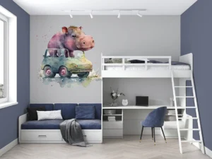 Rengarenk Arabasıyla Dünyayı Keşfeden Sevimli Su Aygırı Fon Perde