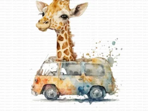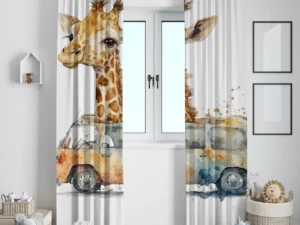 Rengarenk Arabasıyla Dünyayı Keşfeden Sevimli Zürafa Fon Perde